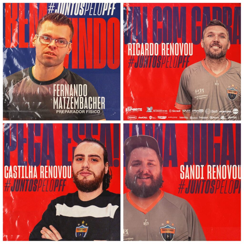 Semanas após anunciar Flavinho Cavalcanti como técnico para 2024, o Passo Fundo Futsal complementa a comissão que vai trabalhar com o treinador. Renovam contrato o auxiliar Ricardo Atkinson, o preparador de goleiros Vinícius Castilha e o massagista Sandi Vieira. Já Fernando Matzmbacher retorna após passagem pelo futsal paranaense para ser o preparador físico.